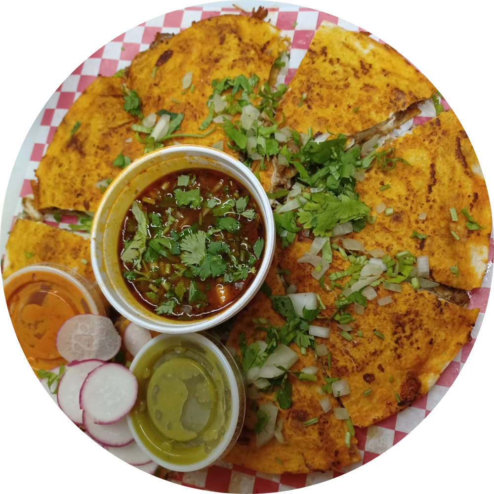 Asada/ steak $11.75 Pastor/ pork $11.75 Lengua/Beef tongue $13 Quesabirria/ shredded beef $13 Bistec con cebolla/ steak with onions $11.75 Milanesa de pollo/ breaded chicken $11.75